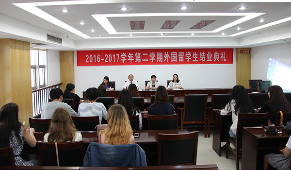 6月22日上午,亚博官网在厚德楼714室举办2016-2017学年第二学期外国留学生结业典礼。副校长王金利出席典礼并为留学生颁发结业证书。