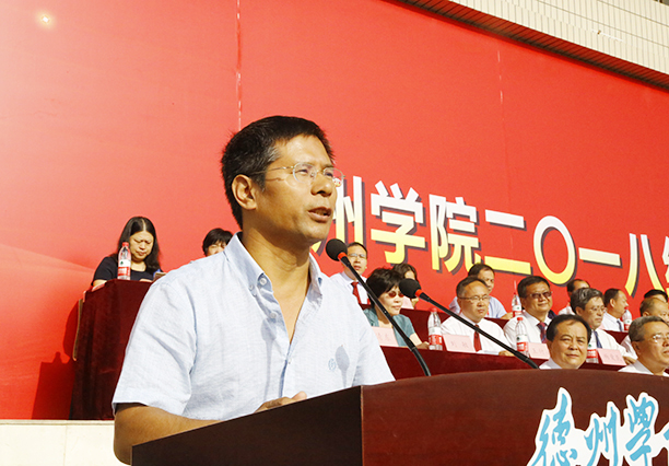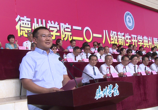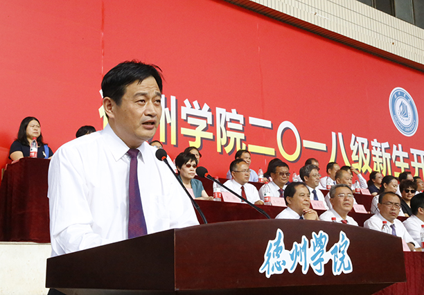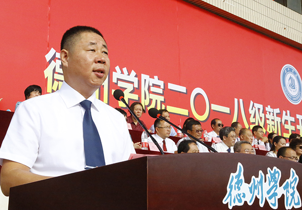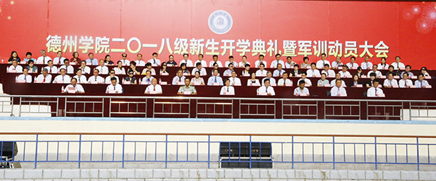 天高云淡,金秋送爽。9月5日,2018级新生开学典礼暨军训动员大会在体育场隆重举行。校党委书记刘文烈,校长赵胜村,德州武警支队参谋长刘华东,北京师范大学天文系博士生导师张同杰,校党委副书记王金利,党委委员、副校长张明征、迟沂军、李永平、张存峰出席。大会由张存峰主持。